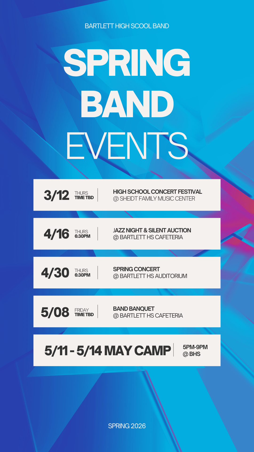 Bartlett High School Band Calendar